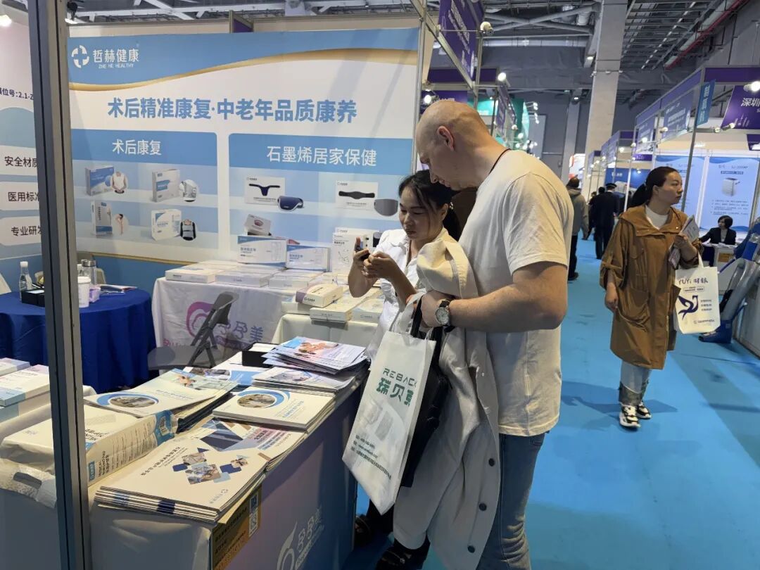本届 CMEF 以 “创新聚变,无限跃迁” 为主题,超 32 万平方米展馆、近 5000 家全球品牌齐聚,共绘医疗健康产业新蓝图。哲赫健康展台前人潮涌动,专业团队以热情细致的讲解,全方位展示产品优势、应用场景与科技实力,与众多客商深入交流、洽谈合作,传递 “专业康复、科技护健康” 的品牌理念,收获满满认可与赞誉。